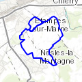 Boucle Jaulgonne, Le Charmel. Trélou-sur-MarneAu départ du parking de la Marne, montée dans les vignes; puis montée dans la forêt jusqu'au chemin de Reims. Traversée du Charmel par la place de l'église. (belle vue sur le château)