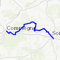 Soissons - Compiègne VTC Villeneuve-Saint-GermainUn parcours VTC depuis la gare de Soissons jusqu'à la gare de Compiègne, deux villes facilement accessibles depuis Paris par le train. Il empreinte le plus possible les petites routes de campagne et termine en traversant un bout de la forêt de Compiègne. »