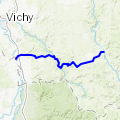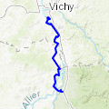 Vichy -> Busset VichyDu Pont de Bellerive, on suit l'Allier d'abord dans les parcs puis en espace plus sauvage, ensuite, à Abrest, on monte dans la colline du Vernet, avec de belles vues au loin, notamment vers les Monts Dômes. »