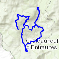 PéoneCime de l'Aspre (2471 m) via la Cime de Chamoussillon (2158 m) par circuit en boucle de 21 Km au départ de Châteauneuf d'Entraunes avec retour par GR 52A et traversée du hameau des Tourrès.
