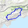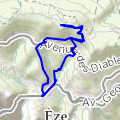 RPM Gr 3a : EZE ÈzeDépart Èze-village - montée au Mt Bastide - descente à l'Hermitage du Col d'Èze - traversée vers l'ouest du Plateau de la Justice - Mont Leuze - Col des Quatre Chemins - retour au nord puis à l'est par la piste militaire pour arriver à l'Hermitage du Col d'Èze. »