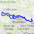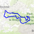RPM Gr 4 : LA BRAGUE - LE BRUGUET ValbonneDépart Valbonne, direction sud - remonter les escaliers - La Gonelle par la piste - descendre en direction du vallon du Bruguet - descendre la piste jusqu'à la Brague - retour à Valbonne par la piste - Visite de Valbonne et de l'abbaye. »