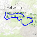 RPM Gr 1 : LA BRAGUE - LE BRUGUET ValbonneDépart Valbonne, direction sud - monter les escaliers - La Gonelle par la piste - descendre en direction du vallon du Bruguet - continuer dans le P.D. en direction du pont des Tamarins - prendre la vallée de la Brague vers Biot sur environ 2,6 km - retour à Valbonne en longeant constamment la Brague - visite de Valbonne et de l'abbaye. »