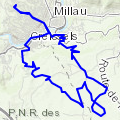 Montée par le col du renard, jusq'à la croix scout puis déambullation sur les pistes du Laezac jusqu'au Rajal del corp et retour sur Millau par Brunas,(aire de décollage des parapentes) et descente par le ravin du facteur. Puis Crteissels et Millau. »