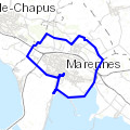 Le tour de Marennes Saint-Just-LuzacBoucle faisant le tour de Marennes, au départ du parking de la rue des Martyrs, le long du canal de la Seudre à la Charente, en passant sous le CD 728. Quitter le canal, pour se diriger vers le Grand Breuil, puis la Chainade. Retour par le sud de Marennes et son chenal. »