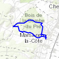 MARSANNAY LA COTE SUR LES HAUTEURS Perrigny-lès-DijonMagnifique circuit au départ du Château de Marsannay la Côte:Sans grosses difficultés à faire par temps sec de préférence.Très bons chemins avec sur le retour une belle vue sur les vignes et le Village de Marsannay la Côte. »