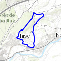Départ de l'église de Thise. Ce circuit comporte plusieurs montées et descentes assez techniques et délicates qui raviront les passionnés de VTT. Les plus audacieux pourront prendre de la vitesse dans certains plus ludiques. Tous les ingrédients pour une randonnée inoubliable ! Ce circuit s'adresse à des vététistes confirmés. Liaison possible avec les circuits VTT n°23, n°25 et ceux d »