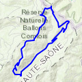Plancher les mines - Mont Ménard (vierge) - Planche des belles Filles - Roche Fendue - Étang des Belles filles - Tête carrée - Refuge de la Grande goutte - Étang des roseaux - Etang du petit haut - Ballon d'Alsace - Stattue Jeanne d'Arc - Jumenterie - Col du Stalon - Col du Lutier - Ballon de Servance - Belfahy - »