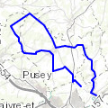 On part de Pusey en direction du Val des Charmes, on prend à gauche en direction de "Sous les Vignes", et après la cabane de chasse, à droite le "Bois du Chanois", deux fois à gauche pour se trouver sur la ligne principale puis à droite on entre dans le "Bois de Pusey", on va jusqu'en bordure de champ et à droite puis dans la "Combe au Venet" à droite »
