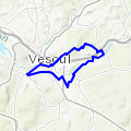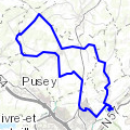 Au départ de Pusey on rejoint le "Chemin Vert" via les "Prés Couchot", la pointe ouest du Lac, la gare et en passant derrière le gymnase Jean Jaurès.