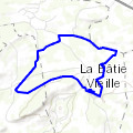 1- Depuis le parking, descendre sur la route en direction du centre du village. Longer l'église par la droite et continuer sur cette route. Le bitume laisse place à une piste agricole. Par cette dernière, rejoindre la Bâti »