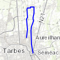 Une boucle par le bois d'Aureilhan, passage par Orleix puis Chis, Aurensan puis Bazet et Bours par le lac et sortie pont de Sixte et Vignon.