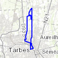 boucle au départ de Bazet puis Oursbelille, pintac et longer le camp de Ger jusqu'à Bartres et retour par Ossun, Ibos, Bordères et lacs de Bours Bazet »