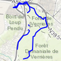 Itinéraire calme avec beaucoup de chemin en terre battue (VTC), certains un peu plus chahutés dans le bois de Verrières. Route peu fréquentée entre Bièvres et Jouy. Piste cyclable pour remonter vers Vélizy, puis bois de Clamart. Fin de la boucle en itinérair »