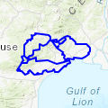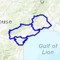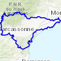 Départ de Balaruc les Bains direction les hauts-cantons, passage par le la saut de Vézoles, puis direction le Tarn et le pic de Nore, retour vers la mer par les Corbières à travers l'Aude, puis massif de Clappe avant de rentrer via le mont Saint-Clair. »