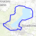 tour du lac de soustons Soustonstrès beaux points de vue sur le lac que l'on suit jusqu'à Azur .Ensuite on marche sur la route du pesquité jusqu'au canal de soustons et retour a la position d'origine par un sentier pedestre »