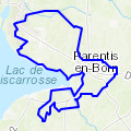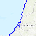 Circuit décrit au départ de Moliets : piste cyclable jusqu'à Vieux-Boucau, tour du lac marin, puis cyclable jusqu'à Hossegor, tour du lac de cette très pittoresque commune (belles maisons, belles boutiques, ses belles huîtres, ...), la boucle continue vers Seignosse et ses 3 étangs, le circuit continue vers Soustons et son très be »