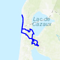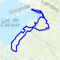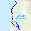 ce parcours emprunte un morceau de piste cyclable départementale puis à travers des chemins forestiers rejoint le lac de cazaux à travers les pins de l'immense forêt de gironde et en bordant le lac. un parcours à ne pas rater pour un moment sportif au bout duquel la halte reposante du lac est une récompense! »