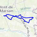 Boucle sur les chemins landais en sous bois. La zone du bois du Pouy est la plus accidentée en sous bois. Distance totale = 30 km avec un dénivelé positif cumulé de 215 m et 207 m en négatif. »