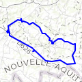 Trajet Mazerolles circuit trail Uchacq-et-ParentisDépart Salle des fêtes, direction lotissement du ruisseau, Larioucla ,Traversée piste, champ Jacquot, boucle Bois, Descente long piste cyclable, longé ruisseau jusqu'au rond point de Villeneuve, revenir par le long de la rocade , contour du champs par la gauche, revenir vers la piste, la longé, passer sous le pont , revenir par la piste du gaz jusqu'au champs de layan, le longé par la droi »