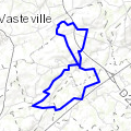 Acqueville Rando UIA 4 avril 2022 circuit long VastevilleCircuit allant de Acqueville vers Vasteville.Entre le Val Fabien et l'entre Deux Vaux, le dénivelé est assez prononcé et de l'eau peut s'écouler dans certains chemins en périodes humides.En contrebas de la fontaine du Bienheureux Thomas Hélie, le passage du ruisseau se fait sur une branche d'arbre bien stable. Sinon les autres chemins sont en bon état et bien empierrés. »