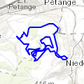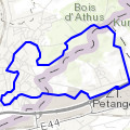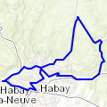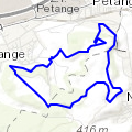 Promenade au départ de la zone industrielle d'Aubange direction Halanzy en longeant la voie ferrée ensuite direction le bois Genot vers le "Chalet" et le la "maison frontière" pour rejoindre Aubange en traversant Pièmont et en utilisant le chemin de l'abattoir. »