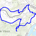 Puis Descente vallée de Montvaux, traverser route, km6 monter les 360 marches, puis longer chemin, route de forêt pour passer par le champ jusqu'au mont Saint Germain, km8, ruines mérovingiennes, descendre au village par dentier ou route, traverser pour prendre la direction du villa »