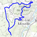 Boucle moulins les metz ars sur moselle VauxDépart sous le pont, longer moselle puis parking bar traverser route, etangs en face pour passer par Vaux, sentiers des anciennes vignes vers Ars, rues pour rejoindre le pont de la Moselle (passage par ecluse d ars interdite), sentier par les étangs de moulins, et enfin passage pont pres de la crs30 »