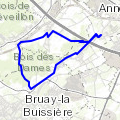 Attention la trace indique des passages difficiles et surtout interdit ...d'accès pas des barbelés...au passage si vous trouvez ma main...j'ai comme qui dirait laissé quelques gouttes de sang au détour d'un champs!