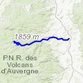 Partis de la ville de Volvic et de la source éponyme, nous suivons, en les escaladant ou les contournant, des puys majestueux : Puy de Jume, Puy de la Coquille, Puy des Gouttes etc. En raison de travaux importants sur le Puy de Dôme (construction d'un trai »