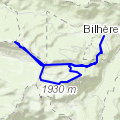 Gere Belesten - Col de la Courade- Bielle Sévignacq-MeyracqDépart de Gere-Bélesten, Montée soutenue jusqu%u2019 aux granges de Gere moins pentu ensuite. Au col possibilité de se ravitailler en eau. Pour la descente, option retour sur Bielle.