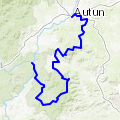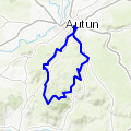 Départ vers le cimetière, monter à la pierre de Couhard, poursuivre à la cascade de Brisecou, continuer jusqu'à l'étang de des Cloix. Longer le mur de Monjeu. Arriver à la croix de la libération et redescendre sur Autun en faisant une petite visite en ville.