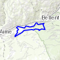 L'itinéraire est adapté aux débutants et emprunte des petites routes asphaltées et de courtes portions de routes en terre. Peu après le village de Bellentre, le circuit suit la voie verte, piste cyclable jusqu'à l'arrivée à Aime.Suivre le balisage bleu Les Hameaux du Soleil. »