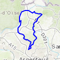 Le circuit emprunte des routes peu fréquentées par les voitures, et une piste cyclable ( partie en bas a droite ) permet de ne pas passer dans la ville de Baillet en France.