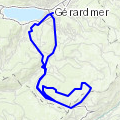 Itinéraire moyennement facile car passage dans le centre piéton de Gérardmer (mieux passer par le Casino face au lac). Demi tour en sortant de la ville le sentier non praticable a cause de poutres pour le passage des piétons afin d'enjamber un ruisseau. »