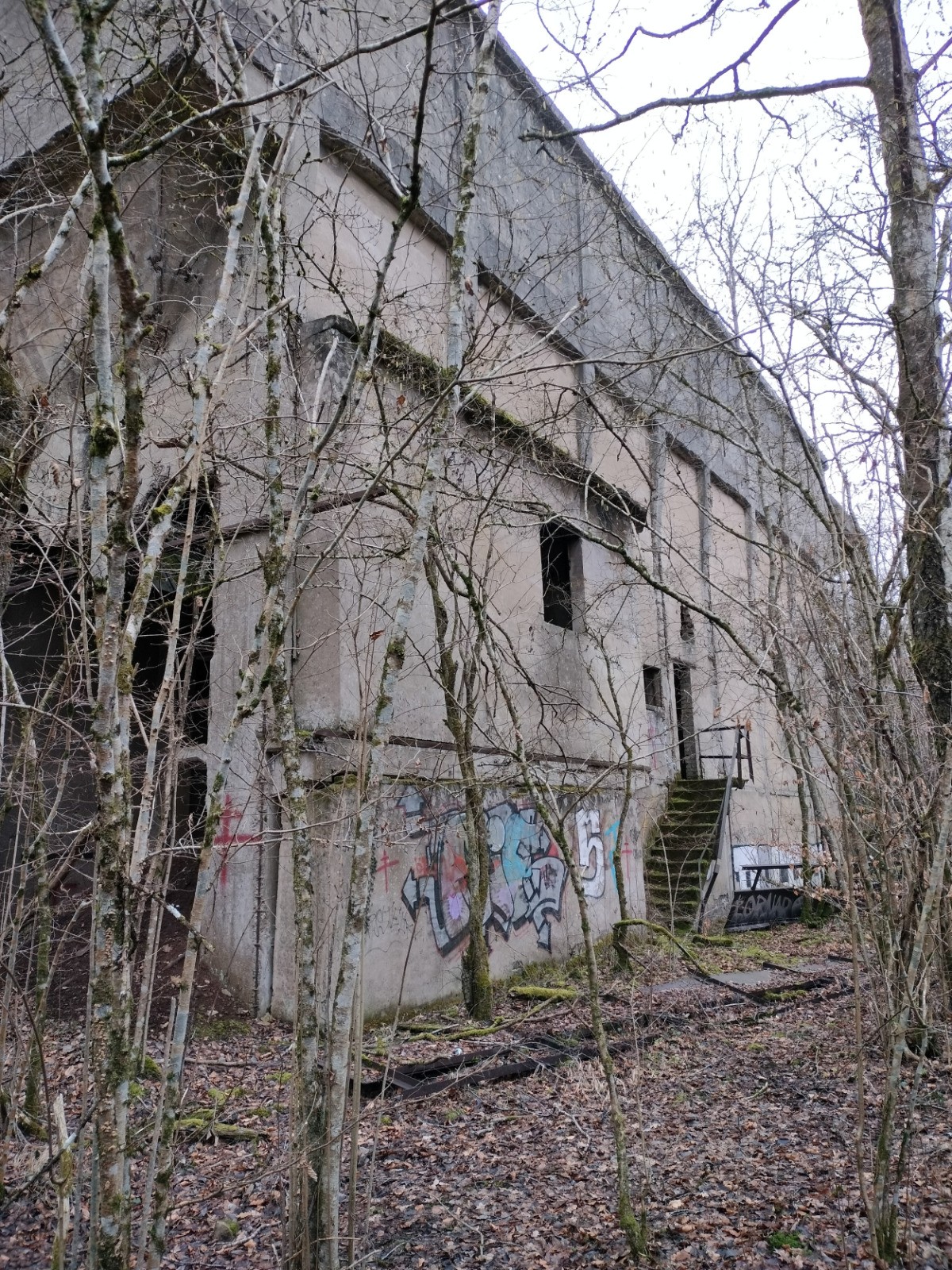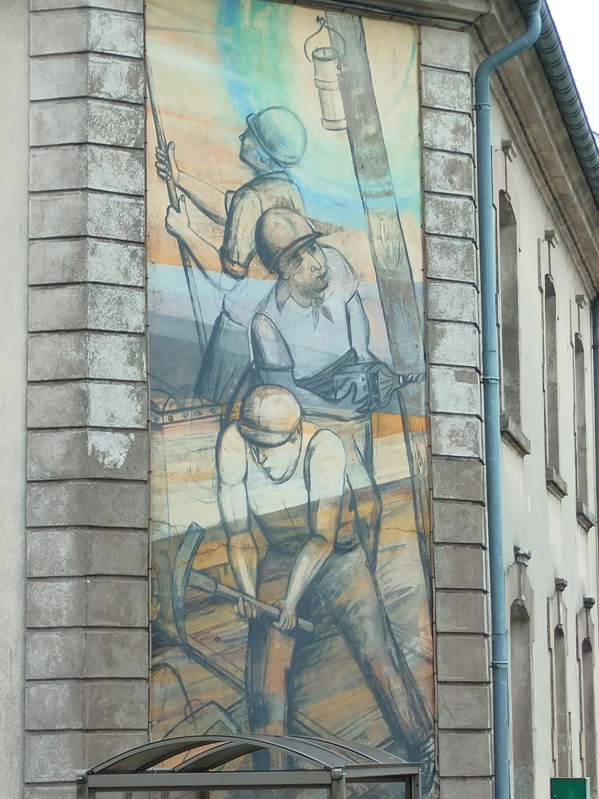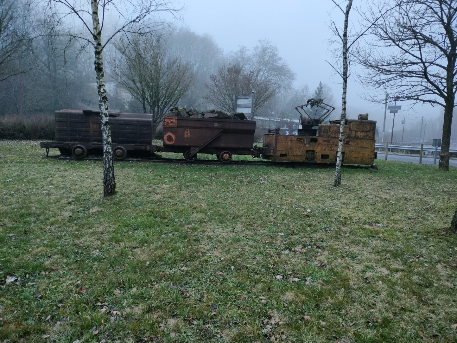 Hussigny. Une brume légère flotte encore sur les vestiges industriels, assez ténue pour laisser deviner les formes, assez présente pour envelopper le paysage d’une douceur laiteuse. Nous traversons les rues silencieuses du village, où les maisons ouvrières émergent dans cette lumière diffuse.