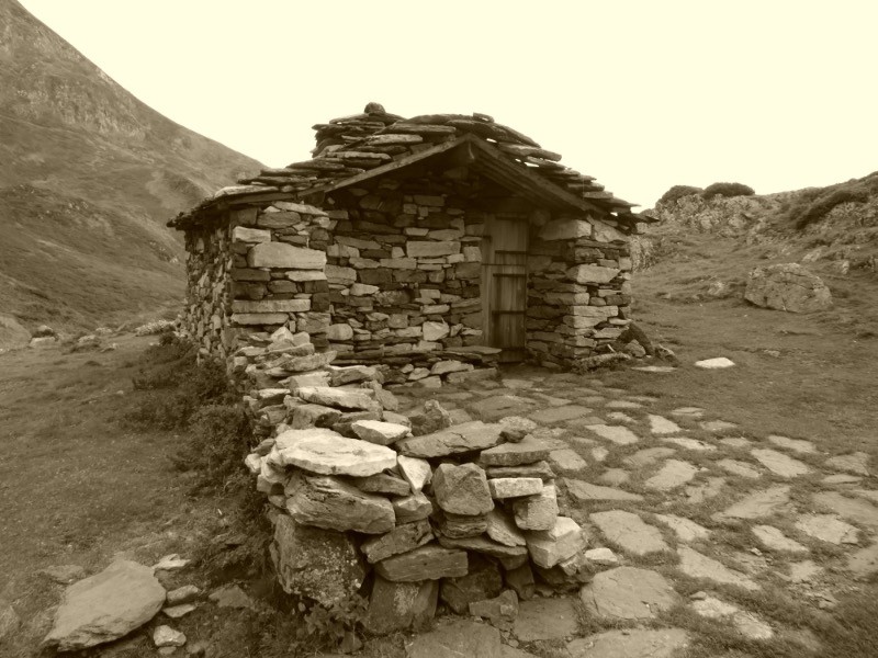 Le ruisseau de Binaros permet aussi, en plus des lacs de Binaros et de l'Oeuf, de se rendre à cette belle cabane de Conques . La montée est soutenue . En traversant les cabanes du Garet on peut voir une étrave, procédé qui permet de protéger la maison lors de la coulée d'avalanche. Ce procédé est présent également dans le secteur des lacs de Bastampe vers Luz Saint Sauveur.