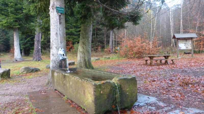 départ stade Paul Gasser de Raon l'Etape, Menhir, Pierre des Sacrifices, borne de l'Evêché, Oratoire du Bon Dieu, fontaine des Maçons, Sapin qui pisse, la Criquette