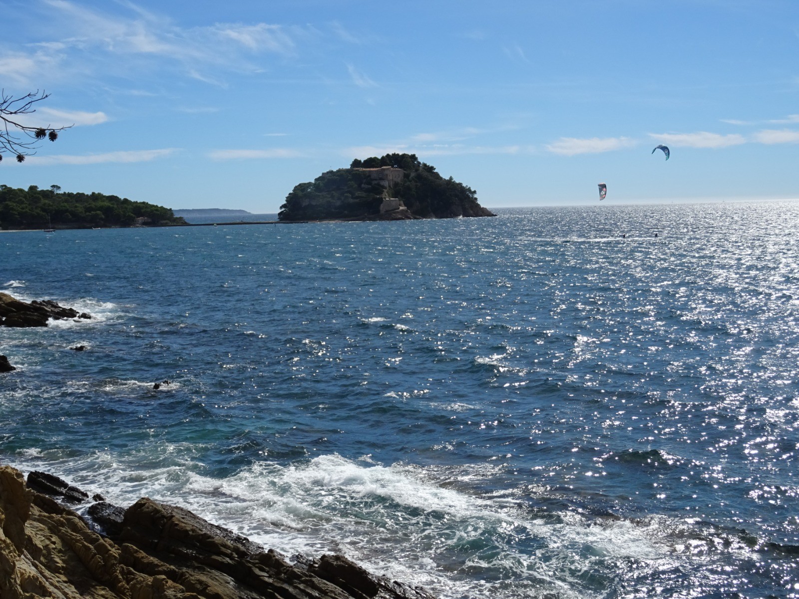 Agréable randonnée en automne. Un barrage, des vignes et le bord de mer jusqu'au fort de Brégançon.