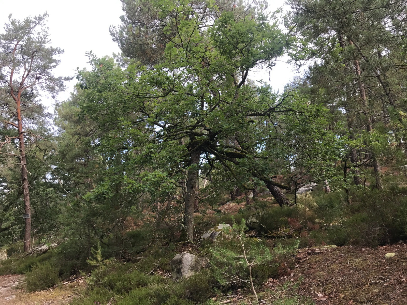 Arbres remarquables du Long Rocher (ne pas confondre avec le Restant du Long Rocher) faisant déjà l'objet d'une balade des arbres remarquables. Celle ci commence depuis un petit parking sur la D157 en suivant le bornage pour y apercevoir avec leur rond bleu : des hêtres, du chêne hYbride, des pins maritimes, du chataignier et de l'alisier.