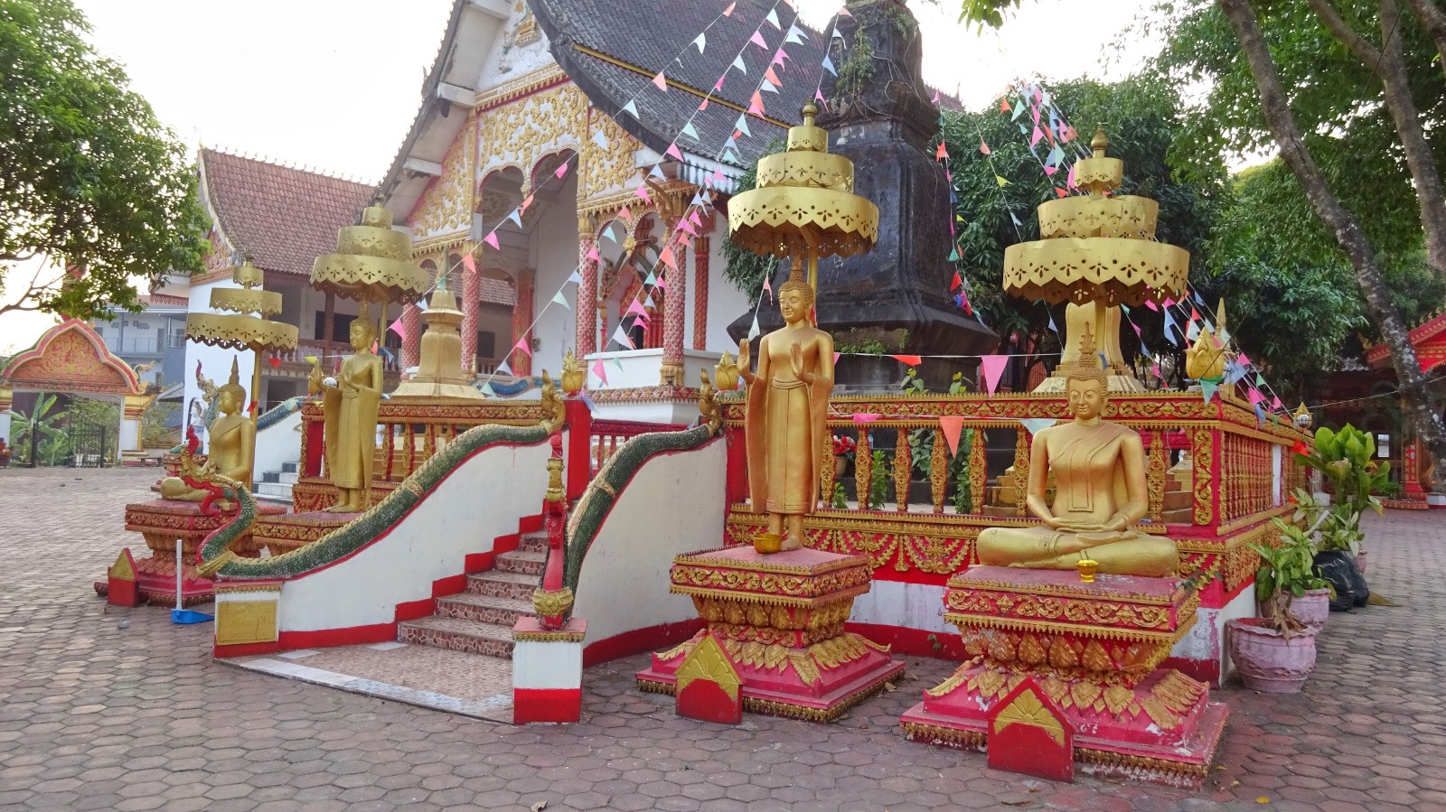 On rentre sur Vang Vieng, au passage on fait une halte pour visiter le Wath That.