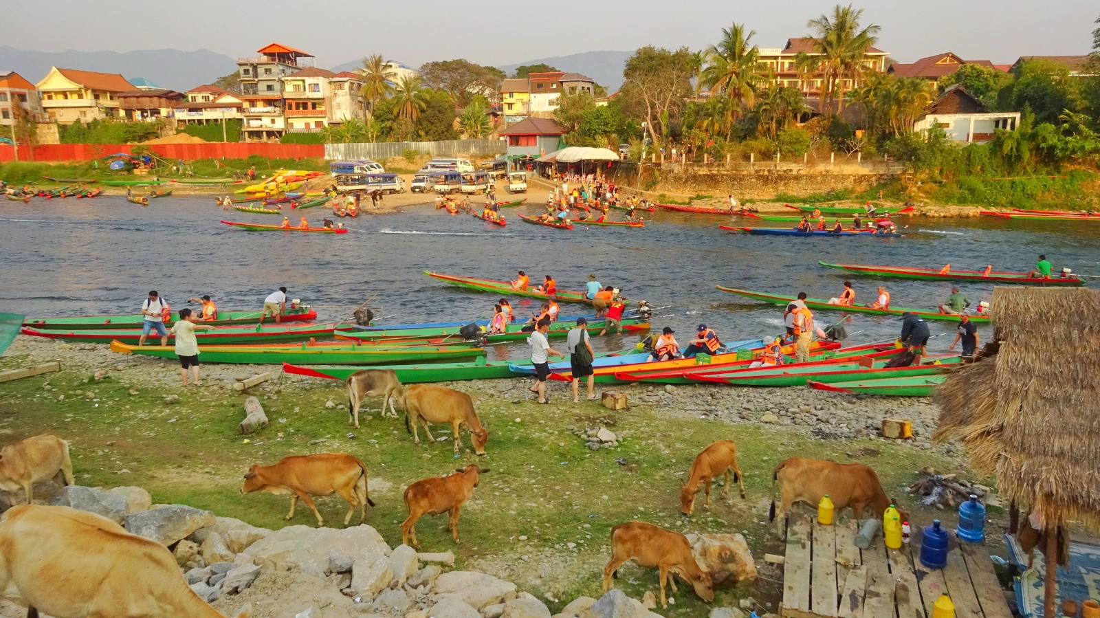 On pose nos sac à dos à Vang Vieng pour 3 jours, après le déplacement depuis Ventiane, on termine la journée à la visite du bourg.
