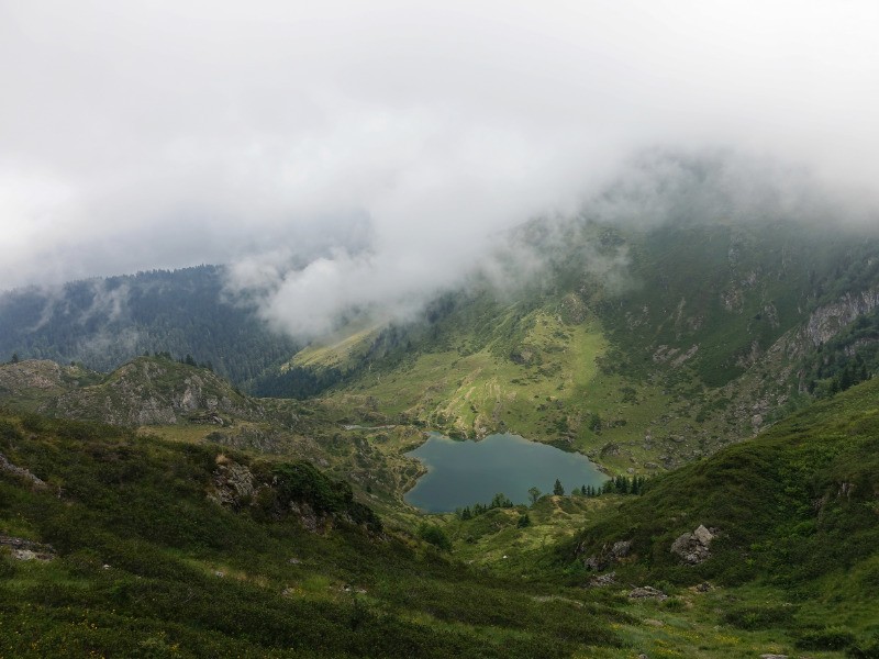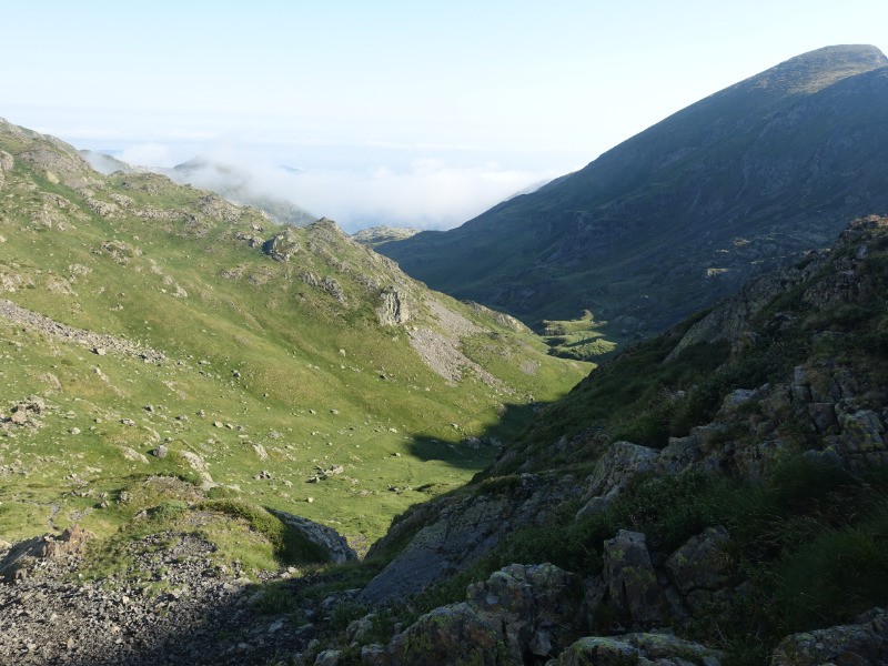 Départ du col de la core (09)- Remonte la vallée d'Eychelle - col de la Crouzette - redscente par la cabane du Taus, - col de laziès - étang de Bellonguères ( rapide détour aller retour qui vaut la peine ) - étang d'ayes, col d'aouedole;cabane d'Eyliet et retour col de la Core par le GR 10