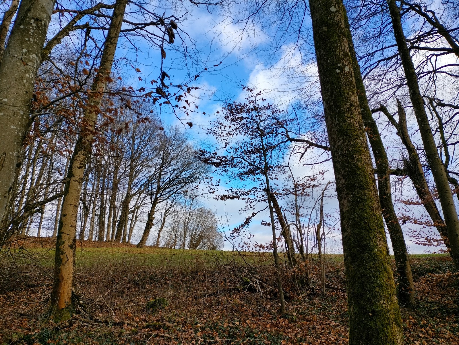 La traversée du bois conduit progressivement vers la crête, jusqu’au