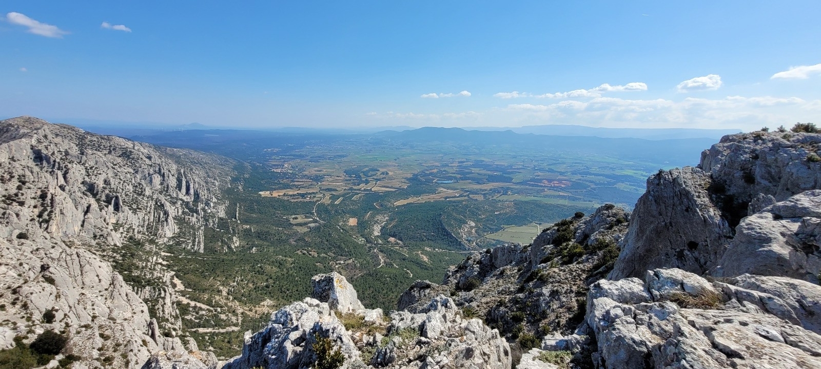 Départ de la randonnée de Vauvenargues dans le sens horaire,un passage à proximité du château de Picasso, de superbes vues tout au long de la journée, une montée assez sportive, un cheminement type montagne russe pour arriver à la croix de Provence et au prieuré, un plateau lunaire à traverser et ce jour-là.....pas de vent, un vrai plaisir. Le secteur bétonné lors de la descente était assez pénible.