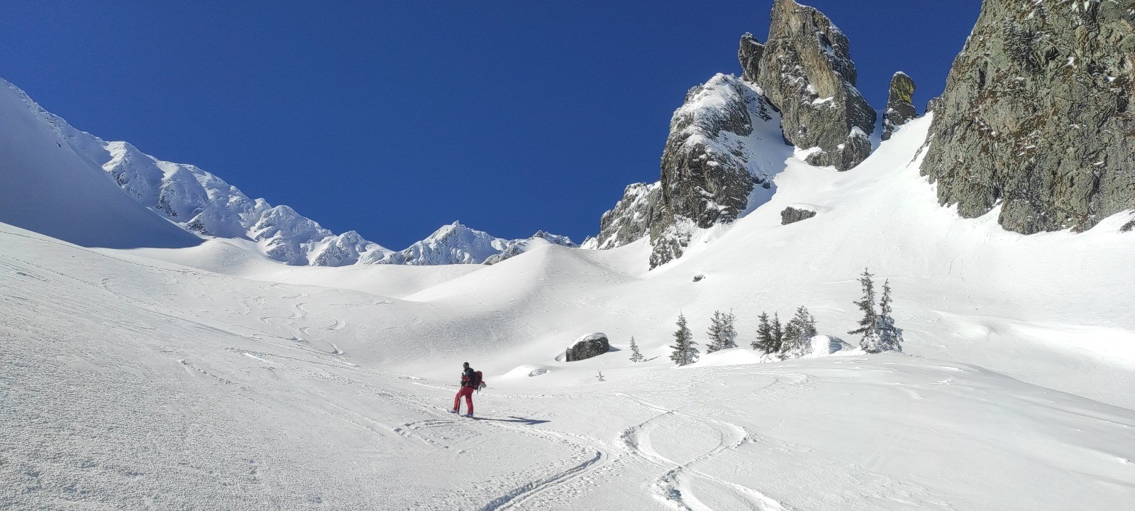 Nous serons doublés par un mec, puis deux jeunes qui visent le pic des Cabottes, qu'ils ne feront pas finalement. Et c'est tout. Que peu de traces à la descente, nous pourrons faire les notres.