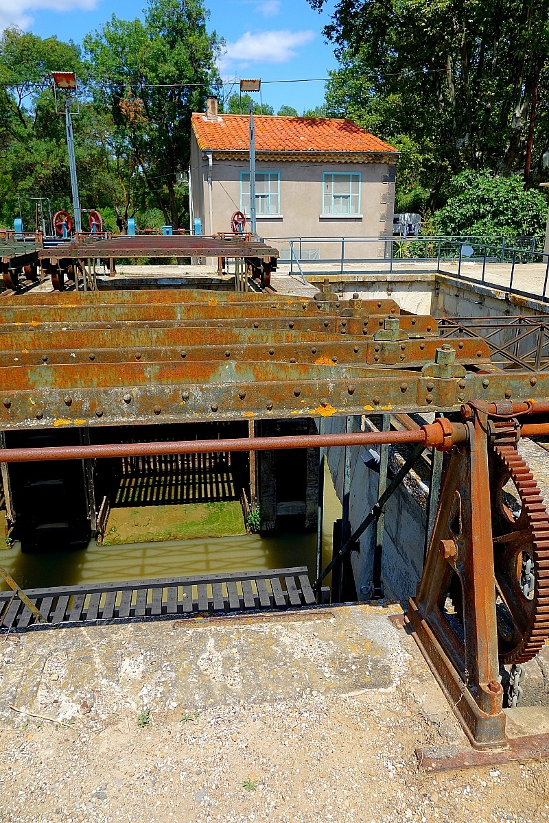 énormes écluses qui commandent le passage du Canal du Rhône à travers ce fleuve