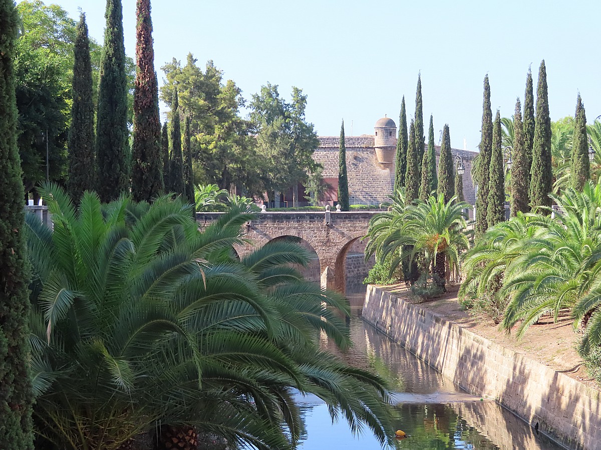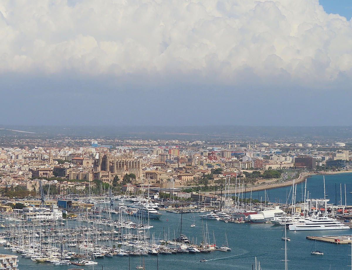 A quelques centaines de mètres au sud les Passeig del Born et de Mallorca, de belles coulées vertes descendant vers la mer, puis les remparts de la ville historique et l’immense cathédrale de Palma.