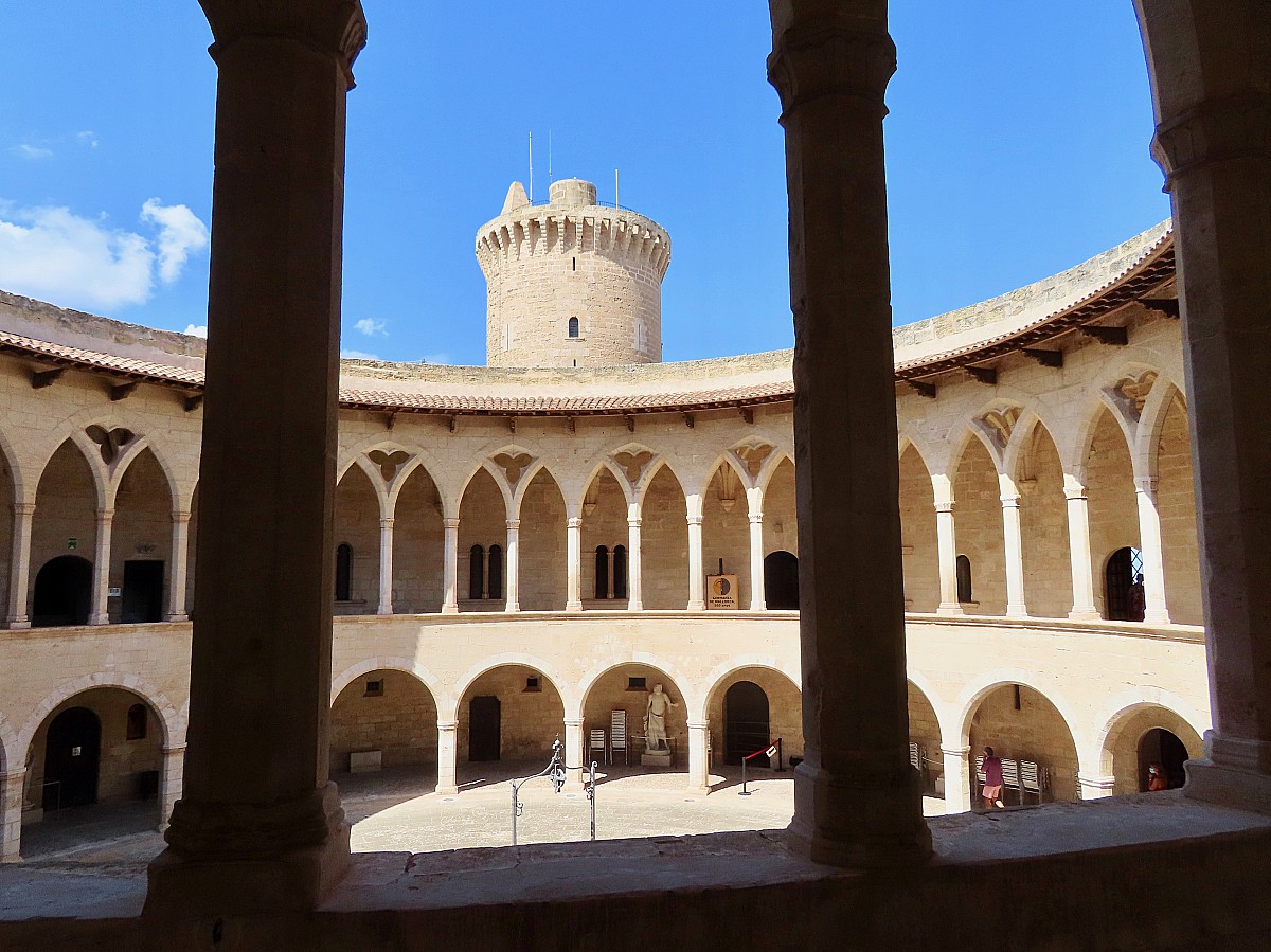 Plus à l’ouest après avoir longé le bord de mer, le château de Belver, un édifice circulaire rare qui offre une belle vue sur la ville.
