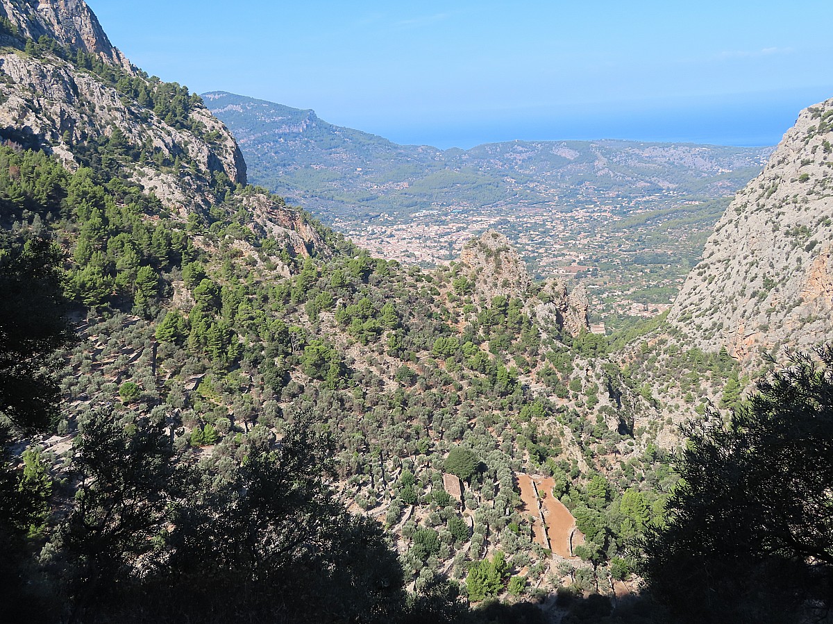 Nous quittons Soller nord-est pour rejoindre le Barranc de Biniaraix, un chemin historique avec plus de 2000 marches construites dans un canyon qui a été depuis des temps immémoriaux la principale voie de communication entre Soller et le monastère de Lluc. Sur près de 5 kilomètres, nous montons progressivement de terrasse en terrasse vers Col de l'Offre avec des vues panoramiques sur la vallée de Soller. Au sommet, un superbe point de vue sur le lac de Cuber d'un bleu profond, une des réserves artificielles qui fournit de l'eau à Palma et ses environs.